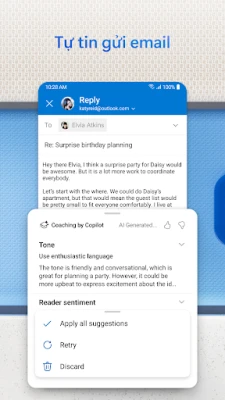 Trong thế giới bận rộn ngày nay, việc quản lý luồng thông tin và lịch trình dày đặc có thể là một thách thức lớn. Outlook for Android được thiết kế để biến sự phức tạp đó thành sự đơn giản, đặt những gì quan trọng nhất vào ngay tầm tay bạn. Với khả năng sắp xếp thông minh, bạn sẽ luôn thấy các email ưu tiên nổi bật, giúp tập trung vào những cuộc trò chuyện cần thiết và giảm thiểu xao nhãng.